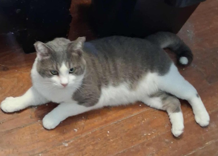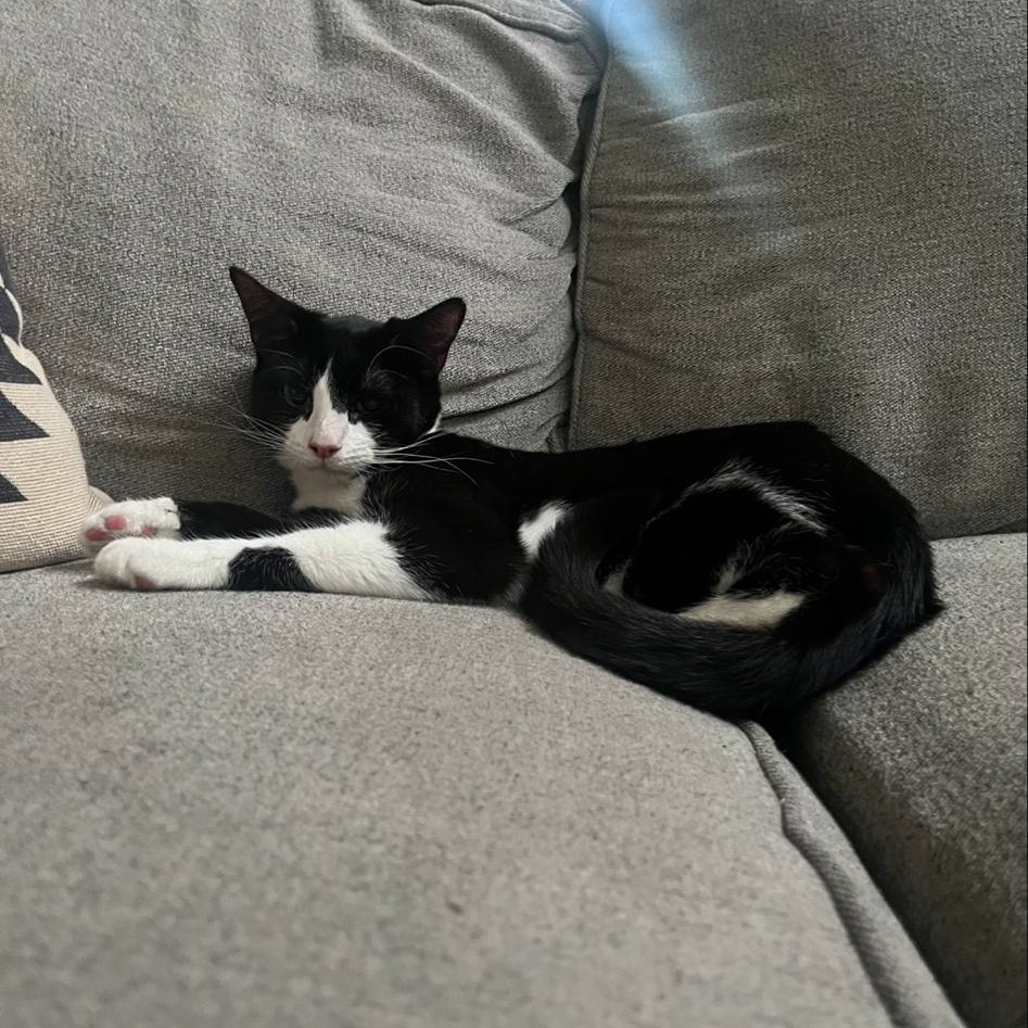 Bio: He loves other cats and feather toys. He was scared of noises and movements at first, but loves attention now. He was found as an outdoor stray cat, and he now enjoys being a spoiled inside cat. He will bite only playfully and gently when you are playing with him. He does not like being picked up. We think he will thrive in a home with at least one other cat, it helps him to get out of his shell and feel more at ease in a room with people.